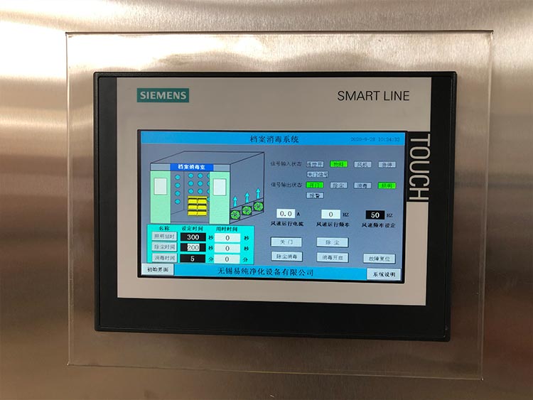 5)工作指示燈指示工作狀態(tài),時(shí)間未到,門無(wú)法打開(kāi);達(dá)到設(shè)定的時(shí)間后,指示燈變綠,可選擇繼續(xù)長(zhǎng)時(shí)間消毒或開(kāi)門取出檔案車。