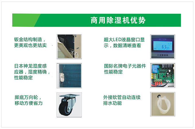 商用除濕機(jī)在家庭得應(yīng)用可以有效的控制濕度,防止物品受潮,風(fēng)干衣物,防止各種因潮濕而引起的各種疾病的流行,除濕機(jī),讓您擁有陽(yáng)光般的感覺(jué)!