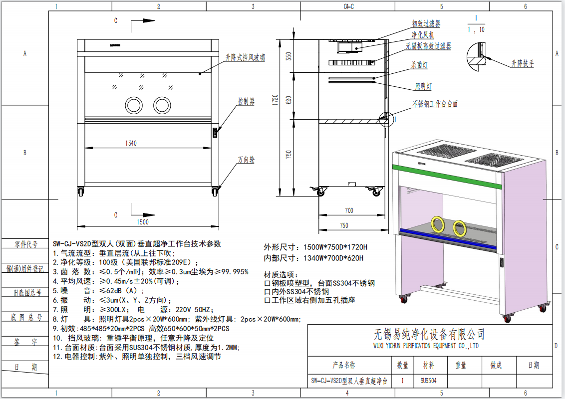 易純凈化無菌接種超凈工作臺技術(shù)參數(shù):